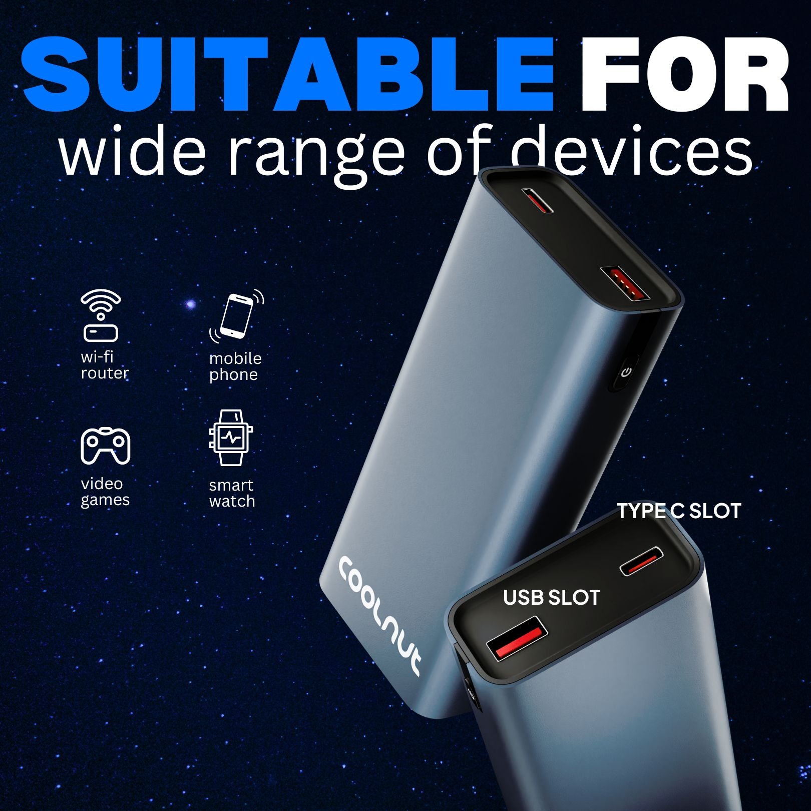 Upgrade your power on the go with the Coolnut Premium Compact Mobile Power Bank. With a robust 10000mAh capacity and the fastest 45W PD input/output, this power bank ensures your devices stay charged and ready for action. Its universal compatibility and advanced charging protocols make it a versatile and essential accessory for all your tech needs.
