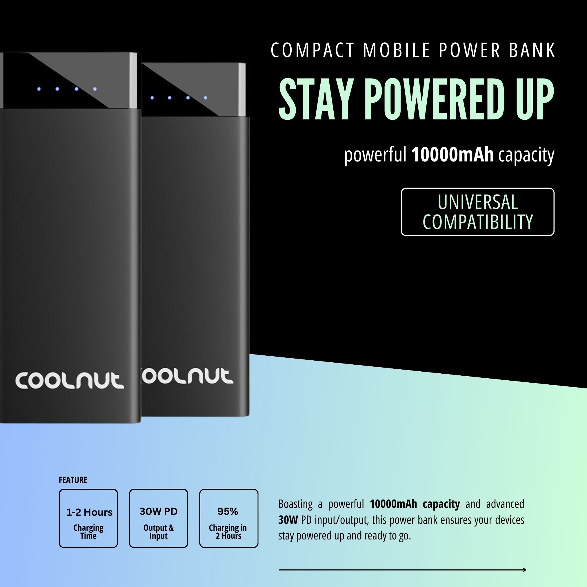 - Upgrade your charging game with the Coolnut Premium Compact Mobile Power Bank and enjoy fast, reliable power on the go.