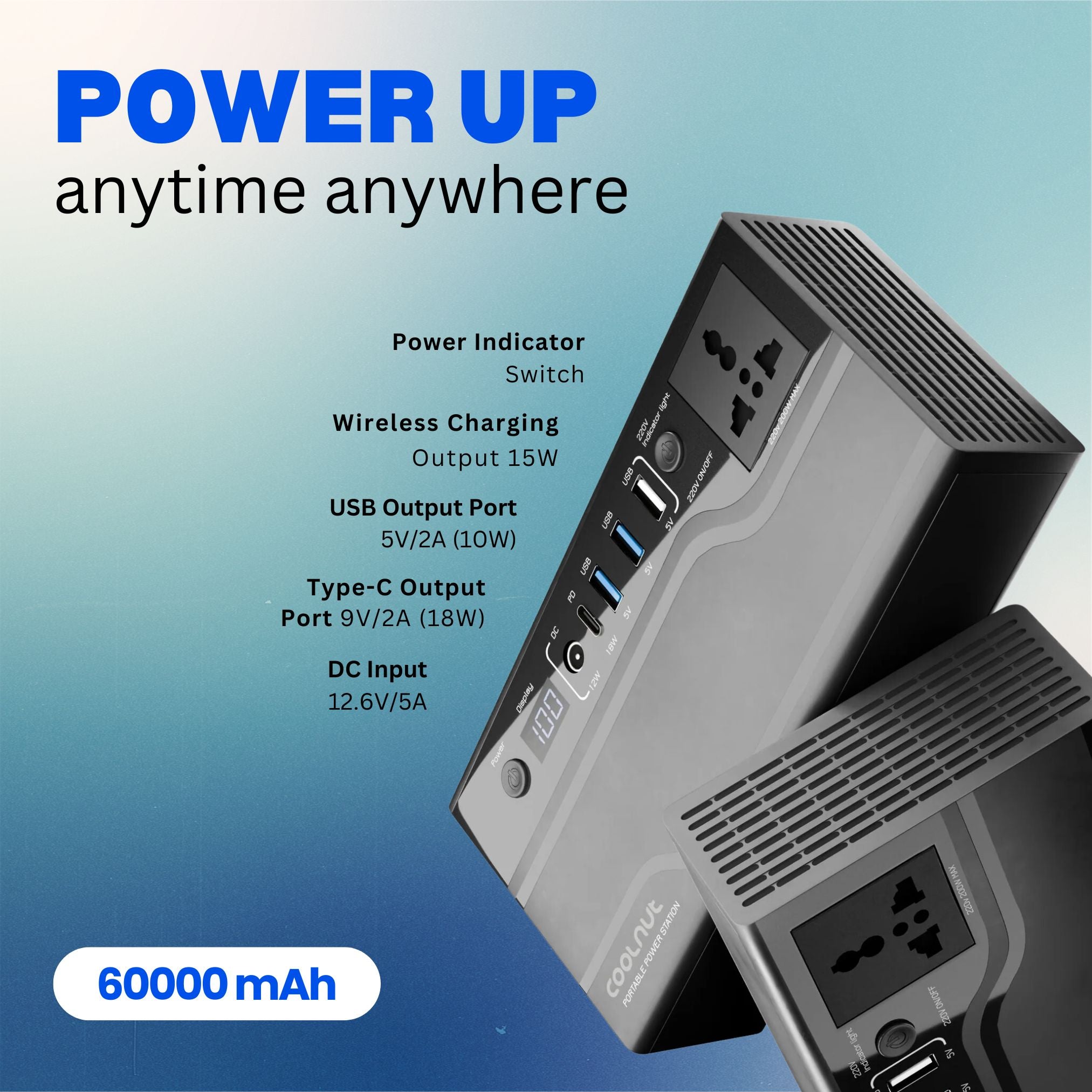Coolnut 200 watt Portable Power Station - 60000mah(222WH) Poratble Power Station
