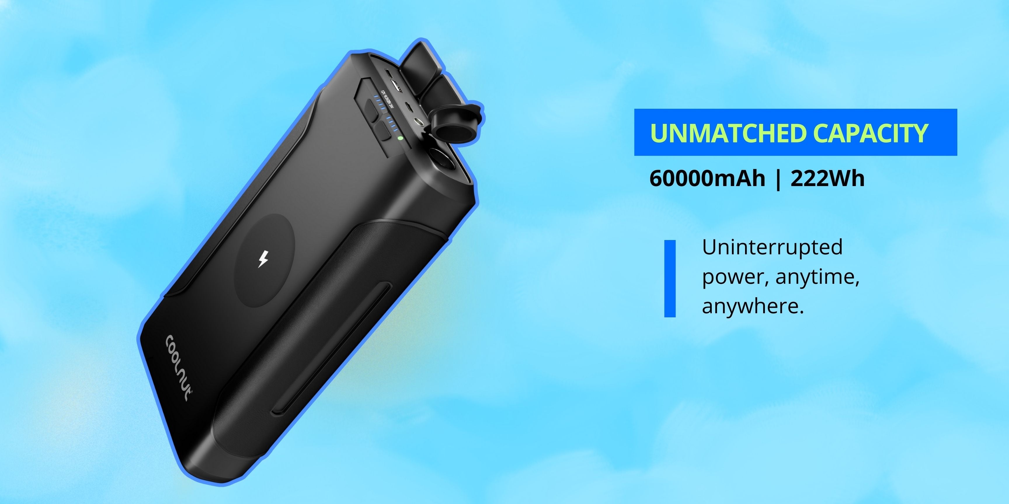 Welcome to the future of power solutions with Coolnut Power Station 60000mAh 222Wh. This premium power bank boasts a colossal capacity of 60000mAh and 222Wh, ensuring uninterrupted power for all your devices, anytime, anywhere.