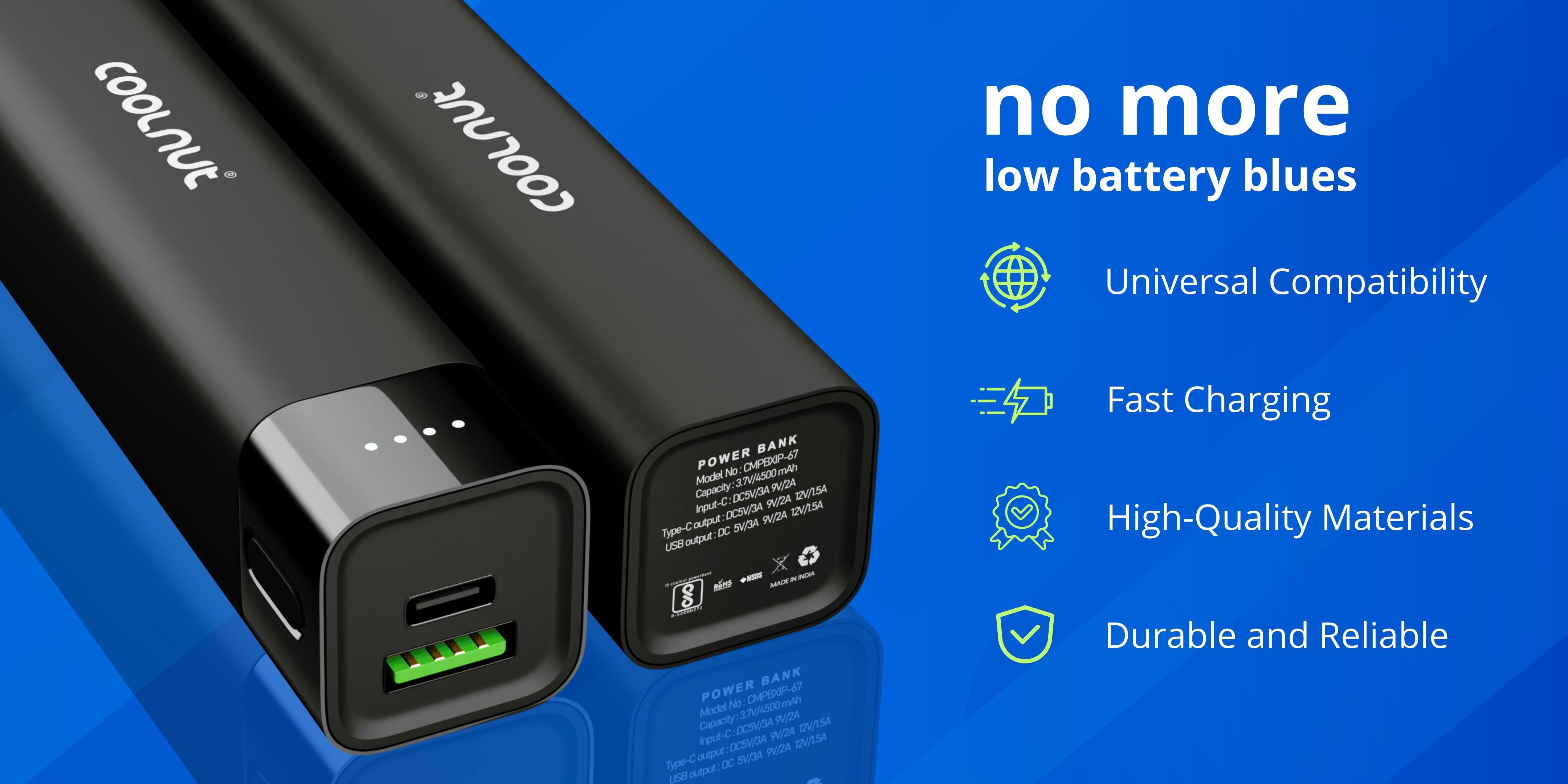 The Coolnut Premium Pocket Mobile Power Bank is a top-tier choice for anyone seeking a reliable and high-performance charging solution. With its universal compatibility and fast-charging capabilities, it stands out in the market. The use of high-quality EV batteries ensures durability, and the extensive 5-year warranty provides peace of mind. Proudly made in India, this power bank combines innovation with customer assurance, making it a premium choice for your charging needs.