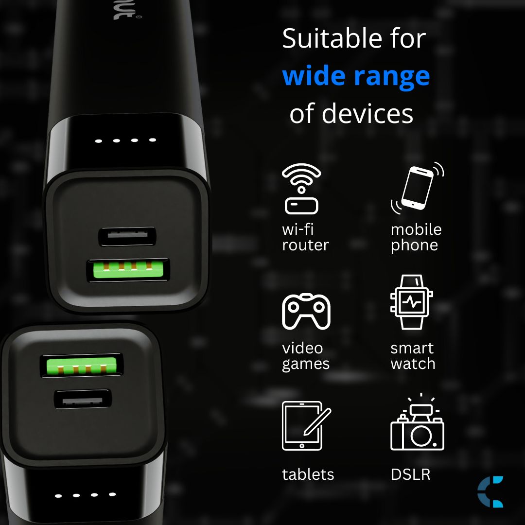 A versatile power bank ideal for charging mobile phones, tablets, smartwatches, Wi-Fi routers, video game consoles, and DSLRs. Stay powered up and connected no matter the device!